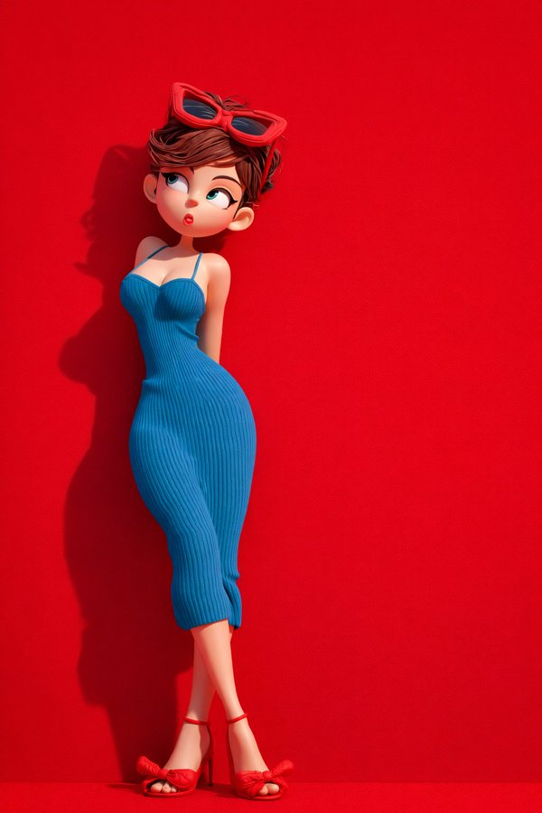 [中文] { "global_settings": { "resolution": "8K", "quality": "超高清晰度", "aspect_ratio": "2:3", "render_style": "AI编辑、高细节3D渲染", "lighting_quality": "柔和影棚光与逼真阴影", "sharpness": "极致清晰、锐利边缘", "noise": "无", "compression": "无" }, "Module_1_Image_1_Style": { "subject": { "character_type": "风格化3D卡通女性", "pose": "站立、身体微微侧转、一手抬起食指触唇", "expression": "灿烂微笑、大眼睛", "hair": { "color": "黑色", "style": "双辫马尾", "accessories": "绿色帽子" }, "face": { "eyes": "大而圆、深色瞳孔", "skin": "光滑、哑光、风格化纹理" } }, "clothing": { "top": "无袖绿色短款上衣", "bottom": "宽松绿色束脚运动裤配抽绳", "footwear": "白色运动鞋" }, "accessories": { "luggage": "绿色硬壳拉杆行李箱" }, "color_palette": [ "多种绿色", "白色点缀" ], "background": { "color": "纯绿色", "texture": "柔软、微颗粒影棚背景" }, "composition": { "framing": "全身", "camera_angle": "平视", "depth": "主体与背景锐利分离" } }, "Module_2_Image_2_Style": { "subject": { "character_type": "风格化3D卡通女性", "pose": "微微后仰靠在背景上", "expression": "俏皮、嘴唇轻撅、眼睛斜视", "hair": { "color": "棕色", "style": "短发、凌乱", "accessories": "红色太阳镜架在头顶" } }, "clothing": { "dress": "贴身蓝色罗纹吊带裙", "footwear": "红色高跟凉鞋配蝴蝶结" }, "color_palette": [ "大胆红色", "深蓝" ], "background": { "color": "纯红色", "texture": "光滑哑光表面" }, "lighting": { "direction": "一侧柔和定向光", "shadow": "在红色背景上投下清晰影子" }, "composition": { "framing": "全身", "pose_emphasis": "弯曲身姿、交叉双腿" } }, "Module_3_Image_3_Style": { "subject": { "characters": [ { "type": "风格化3D卡通女性", "position": "左侧", "wrapped_in": "红色纹理毯子", "expression": "平静、浅笑、眼睛向上看" }, { "type": "风格化3D卡通男性", "position": "右侧", "wrapped_in": "橙色纹理毯子", "expression": "中性、温柔目光向上" } ] }, "environment": { "furniture": "红色沙发", "floor": "红色地面", "background": { "color": "深红色", "texture": "织物状横向纹理" } }, "details": { "feet": "女性赤脚、男性穿袜", "blanket_texture": "厚实针织面料" }, "composition": { "framing": "居中、中景宽镜头", "symmetry": "左右平衡构图" } } } [English] { "global_settings": { "resolution": "8K", "quality": "ultra-high definition", "aspect_ratio": "2:3", "render_style": "AI-edited, high-detail 3D render", "lighting_quality": "soft studio lighting with realistic shadows", "sharpness": "extreme clarity, crisp edges", "noise": "none", "compression": "none" }, "Module_1_Image_1_Style": { "subject": { "character_type": "stylized 3D cartoon female", "pose": "standing, body slightly angled, one hand raised with index finger touching lips", "expression": "cheerful smile, wide eyes", "hair": { "color": "black", "style": "two braided pigtails", "accessories": "green cap" }, "face": { "eyes": "large, rounded, dark pupils", "skin": "smooth, matte, stylized texture" } }, "clothing": { "top": "sleeveless green crop top", "bottom": "loose green jogger-style pants with drawstring", "footwear": "white sneakers" }, "accessories": { "luggage": "green hard-shell suitcase with extended handle" }, "color_palette": [ "multiple shades of green", "white accents" ], "background": { "color": "solid green", "texture": "soft, slightly grainy studio backdrop" }, "composition": { "framing": "full body", "camera_angle": "eye-level", "depth": "subject sharply separated from background" } }, "Module_2_Image_2_Style": { "subject": { "character_type": "stylized 3D cartoon female", "pose": "leaning slightly backward against background", "expression": "playful, lips slightly pursed, eyes looking sideways", "hair": { "color": "brown", "style": "short, tousled", "accessories": "red sunglasses resting on head" } }, "clothing": { "dress": "form-fitting blue ribbed dress with thin straps", "footwear": "red high-heel sandals with bow detail" }, "color_palette": [ "bold red", "deep blue" ], "background": { "color": "solid red", "texture": "smooth matte surface" }, "lighting": { "direction": "soft directional light from one side", "shadow": "defined shadow cast on red background" }, "composition": { "framing": "full body", "pose_emphasis": "curved posture, crossed legs" } }, "Module_3_Image_3_Style": { "subject": { "characters": [ { "type": "stylized 3D cartoon female", "position": "left", "wrapped_in": "red textured blanket", "expression": "calm, slight smile, eyes looking upward" }, { "type": "stylized 3D cartoon male", "position": "right", "wrapped_in": "orange textured blanket", "expression": "neutral, gentle gaze upward" } ] }, "environment": { "furniture": "red sofa", "floor": "red surface", "background": { "color": "deep red", "texture": "fabric-like horizontal texture" } }, "details": { "feet": "female barefoot, male wearing socks", "blanket_texture": "thick, knitted fabric" }, "composition": { "framing": "centered, medium-wide shot", "symmetry": "balanced left and right composition" } }